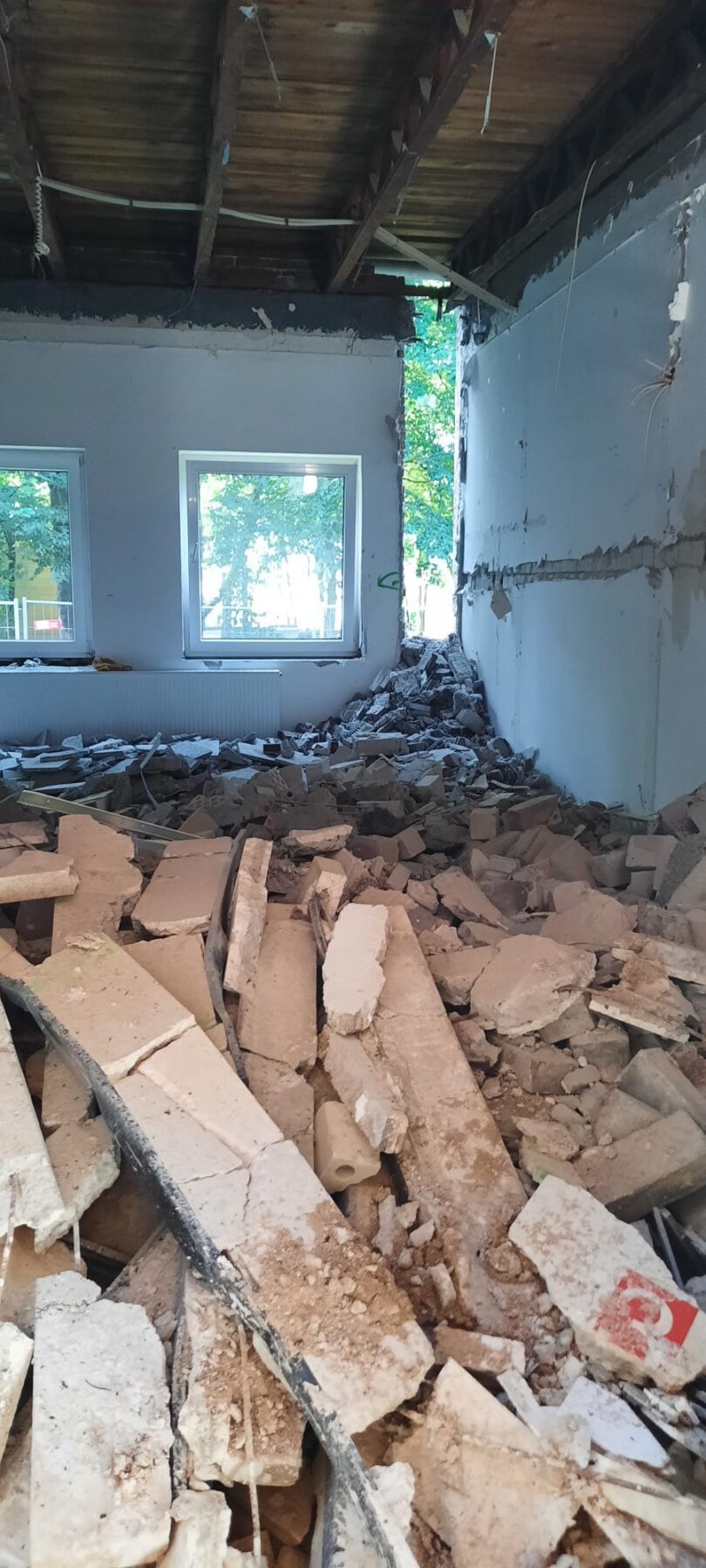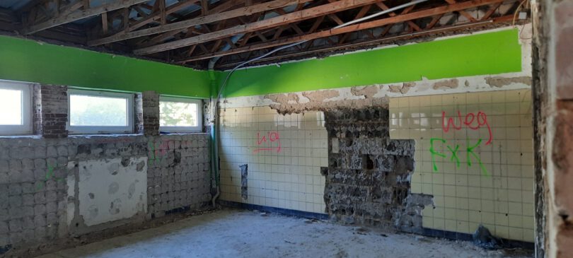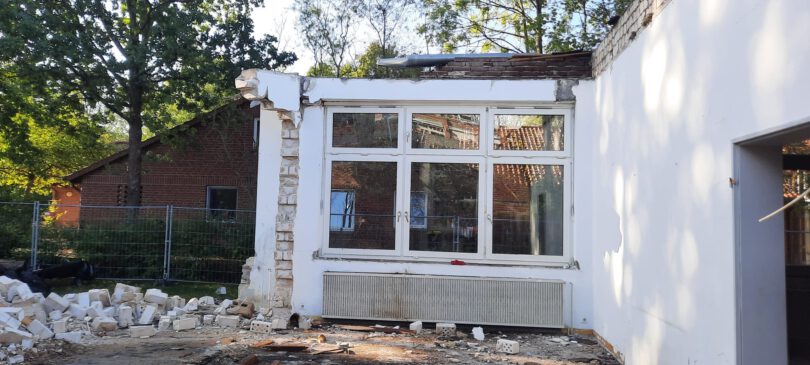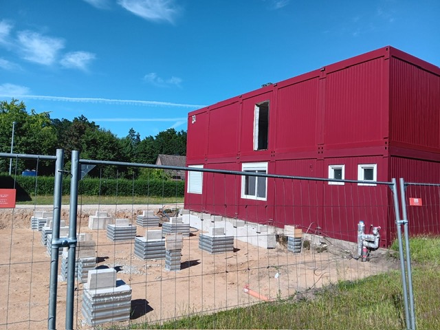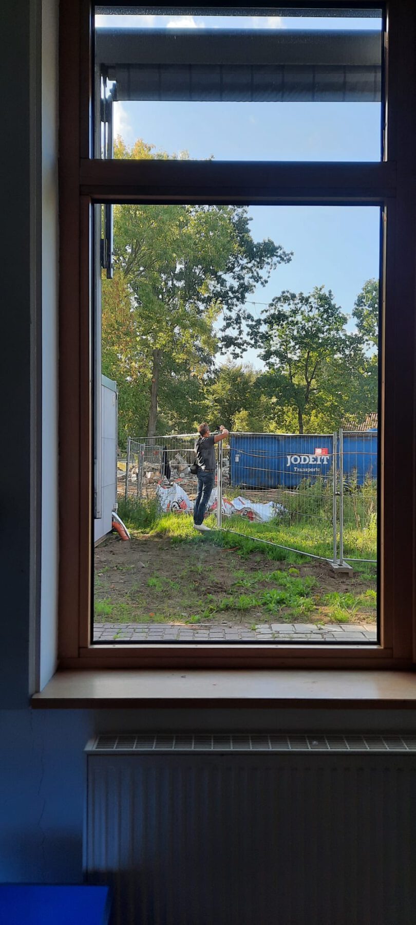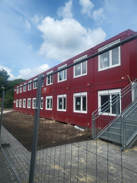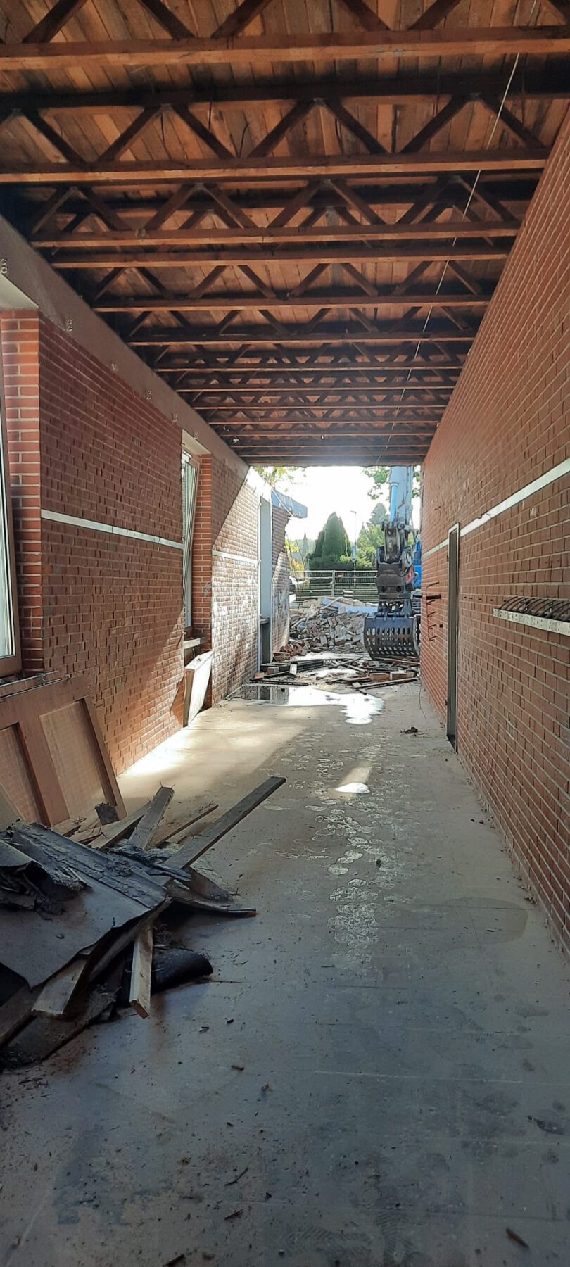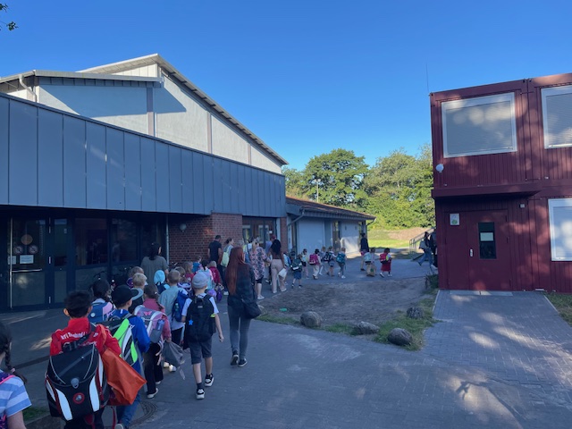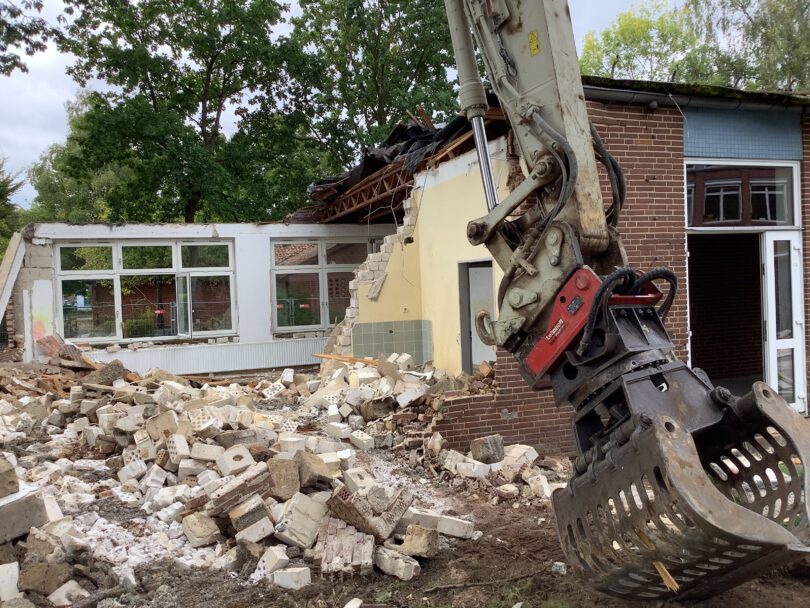 In den nächsten zwei bis drei Jahren wird unsere Schule in Teilen abgerissen und neu gebaut und in Teilen saniert. Während des Umbaus kann dort kein Unterricht stattfinden und so bekommen 8 Klassen eine neue „rote Schule“ neben der Turnhalle. Mit einer „Abrissparty“ vor den Sommerferien haben wir uns von der „alten“ Schule farbenfroh verabschiedet. Alle Materialien wurden in Kartons verpackt und für den Umzug in die „rote Schule“ vorbereitet. Mit Beginn des neuen Schuljahres konnten wir in die neuen Klassenräume einziehen. Gleichzeitig passiert auch ganz viel auf der Baustelle. Wir werden vom Neu- und Umbau der Schule immer wieder Fotos machen, die hier zu sehen sind.